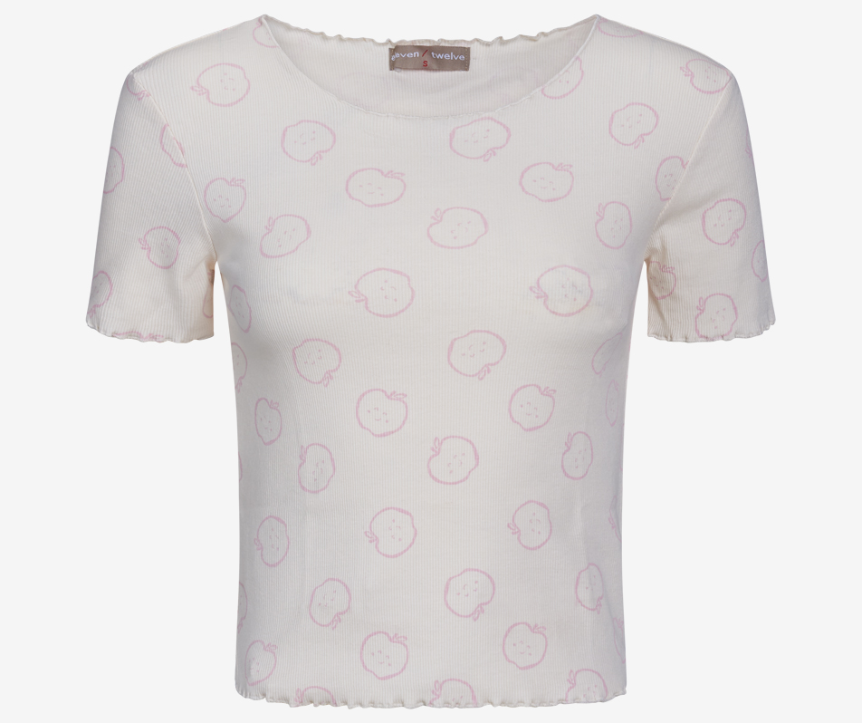 The Apple print Lettuce Neck is a new-season take on a fun wardrobe staple. The simple t-shirt silhouette is combined with a ribbed jersey fabrication and lettuce-edge trim making …