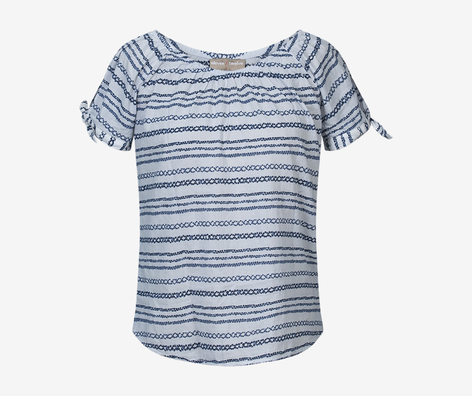 The off-shoulder look from this short sleeve blouse top will set you apart with its tie-dye finish to give that fresh spring feel. Perfect for a casual evening getaway.