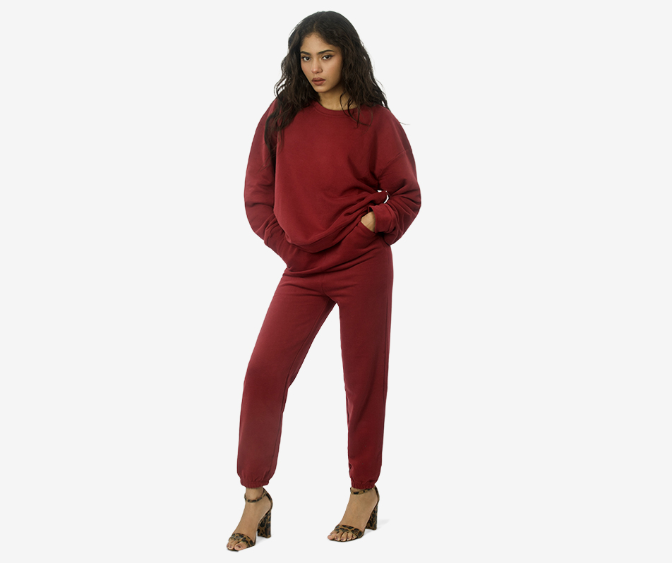 Bold colours make a bold statement. Strides Co brings you one of the hottest colors of the year this Winter in a classic sweatshirt style. Wear with ‘Strides Co-ord Set in Burgundy…