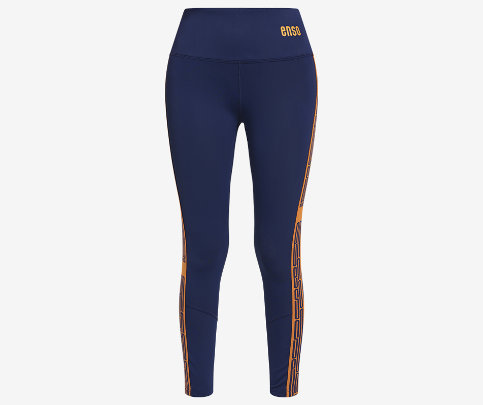 A striking blue featuring a sleek and stylish orange side tape. These leggings are ideal for a gym session or your daily activities.