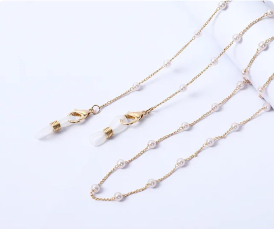 Glasses/Mask Chain - Gold Chain with Pearls