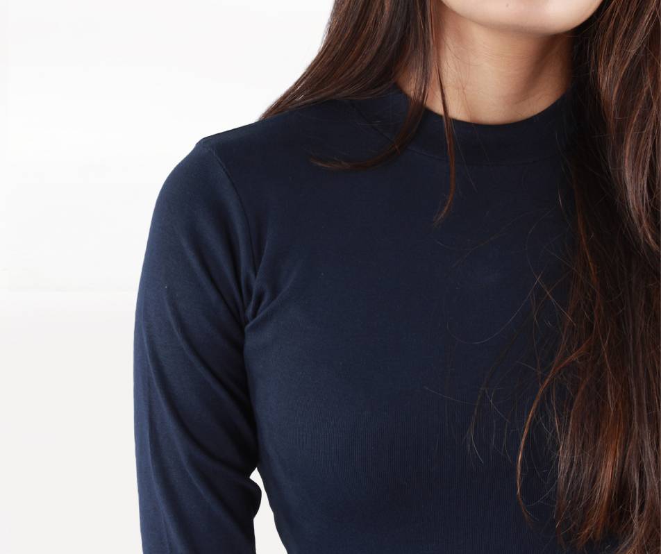 Made out of premium cotton, this high-neck top comes with long-sleeve and fitted. Wear tucked in or out and add a blazer for colder weather. Sleeve Length: 18 1/2"