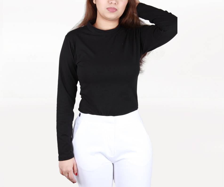 Made out of premium cotton, this high-neck top comes with long-sleeve and fitted. Wear tucked in or out and add a blazer for colder weather.
