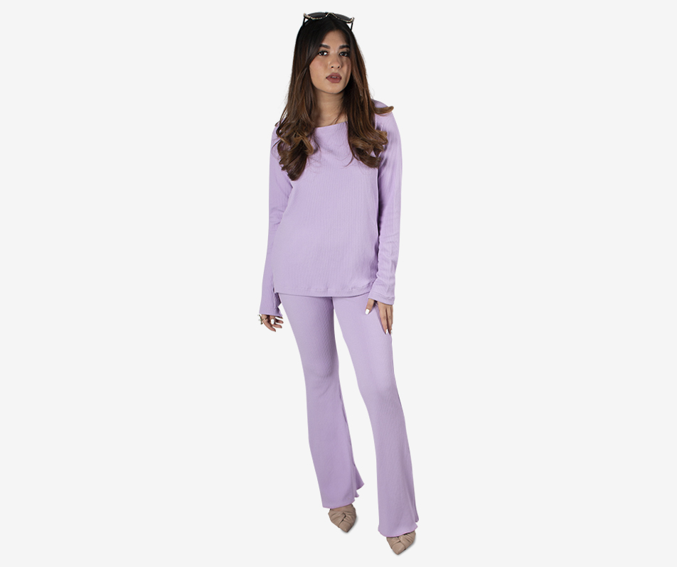 Slim and stretch fit – these modern basic pants come in a very smooth texture and are perfect for both work and casual wear. Wear this with the matching lavender ribbed top.