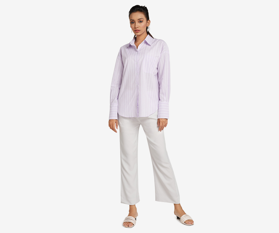 Lavender Striped Shirt is a versatile and stylish addition to your everyday wardrobe. Made from high-quality, lightweight 100% cotton fabric, this shirt is perfect for the warmer m…
