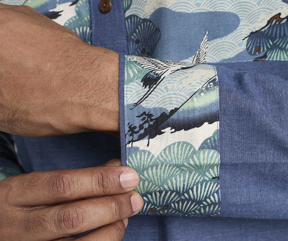 -Japanese Art Design -Half-Body Print -Cuff Design -Coconut Button -Side-Pockets -Regular Fit -100% Cotton