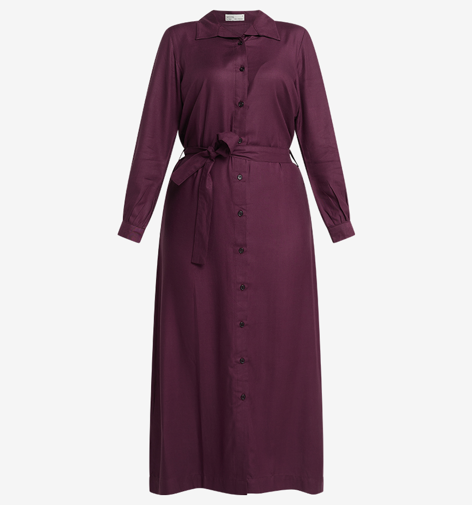 Description: The MAHAL Boysenberry Purple Maxi Dress, in a rich dark purple, is crafted from 100% Tencel for a luxurious feel. Featuring a button-down design with a belt, it offers…