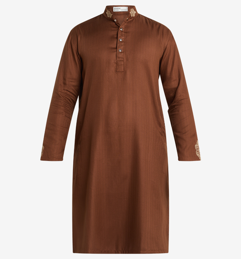 Behold the embodiment of timeless tradition with a contemporary allure - the MAHAL Premium Copper Heritage Embroidered Panjabi. This captivating piece seamlessly marries the essenc…