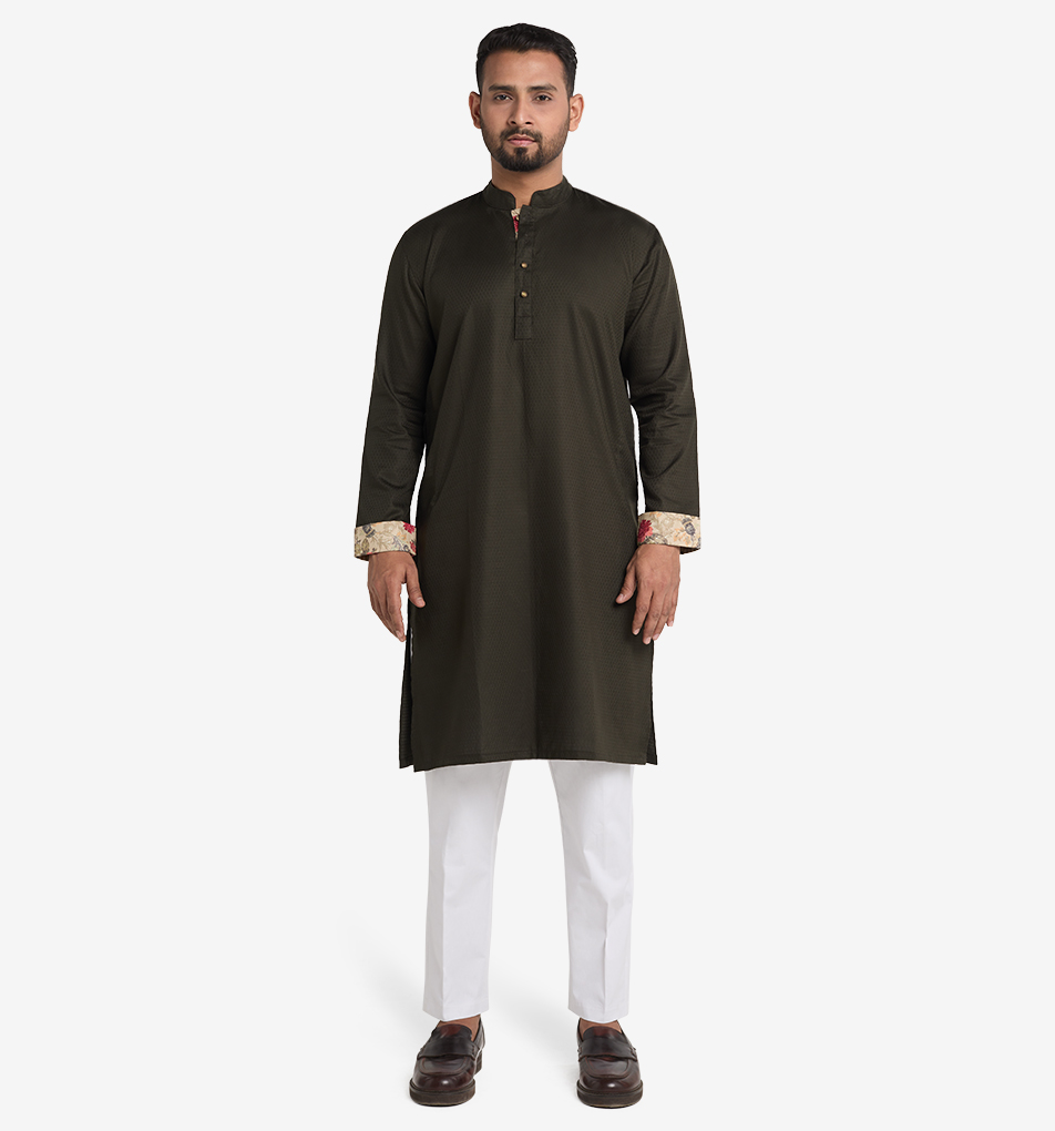 Dive into sophistication with the MAHAL Dark Seaweed Green Lotus Panjabi. Its subtle geometric texture and dark seaweed green exudes a masculine charm, with original floral digital…