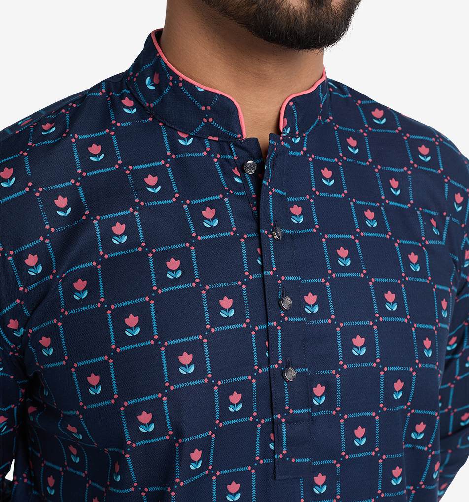 Introducing our signature piece for the season, the MAHAL Exclusive Neon Tulip Navy Panjabi – a sublime expression of originality and exclusivity. Enveloped in a rich navy hue, thi…