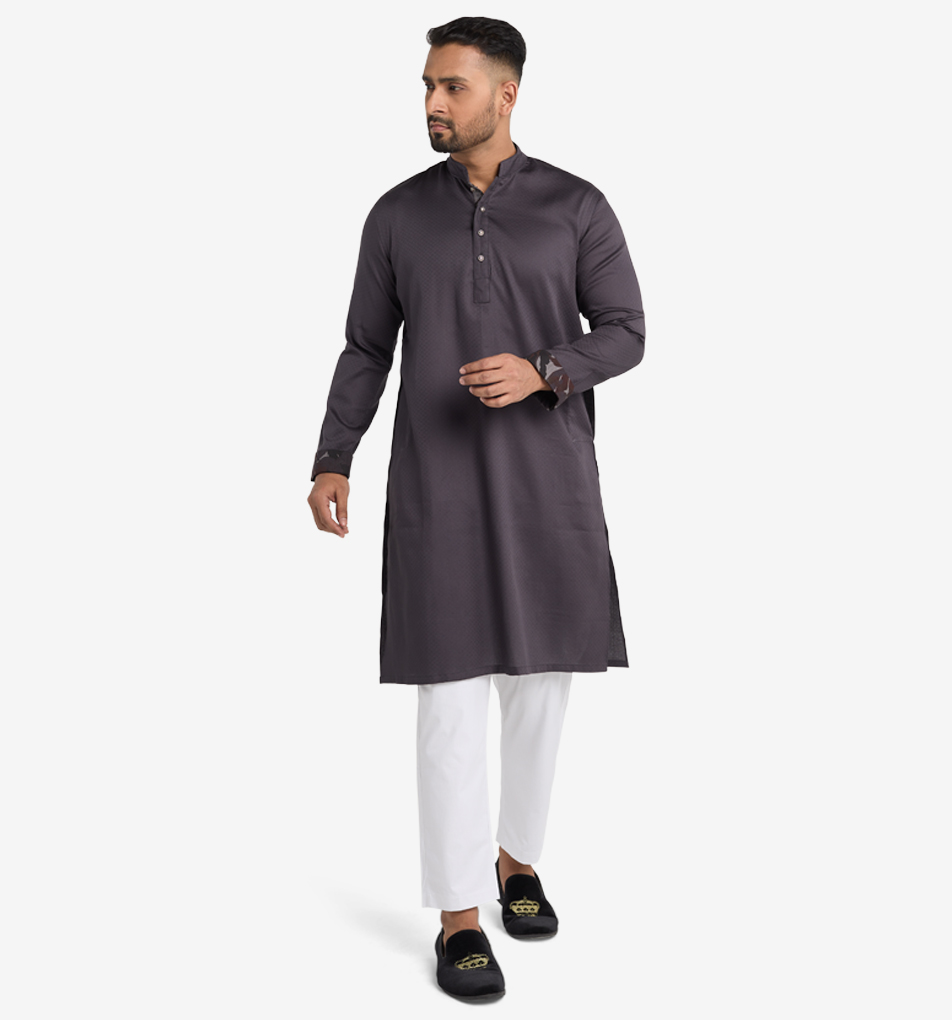 Elevate your wardrobe with our Granite Ash Textured panjabi. Inspired by volcanic shades and rocky terrains, its intricate textured body and complementing earthy accents exude soph…