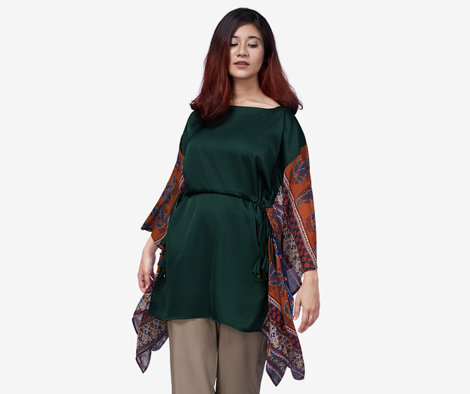 MAHAL Green Kaftan w/ Floral Print Sleeves
