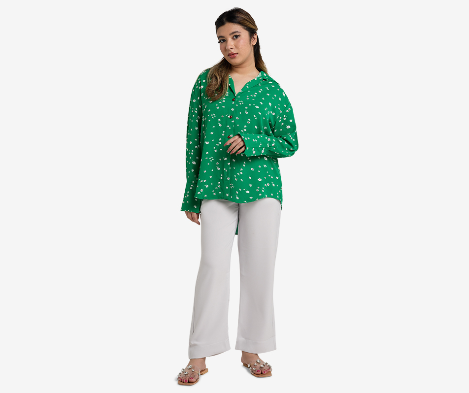Get ready for major style points in this Green Relaxed Fit Blouse with Red Cherry Buttons! The perfectly tailored relaxed fit is ultra-comfortable and versatile, while the eye-catc…