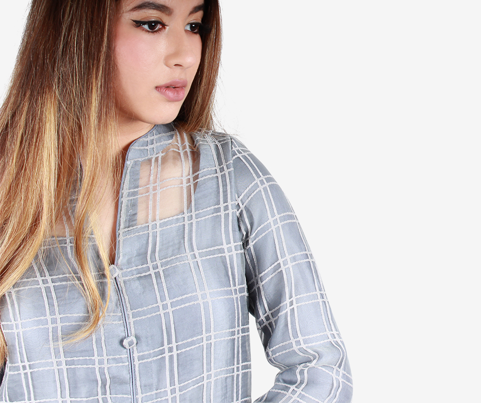 Crafted from a luxurious cotton-blend fabrication, the MAHAL Checked Kurta in grey brings comfort and style to your ever growing wardrobe. The checked design inject a contemporary …