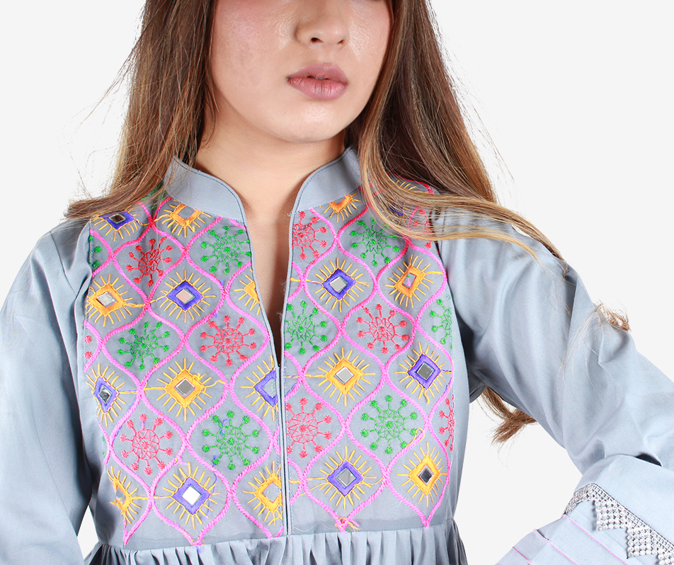 Stay chic in this mid length MAHAL Embroidered Dress. Inspired by Dhaka traditional patterns for a hip colorful look, the wide sleeves boast fresh, fun and happy vibes for your day…