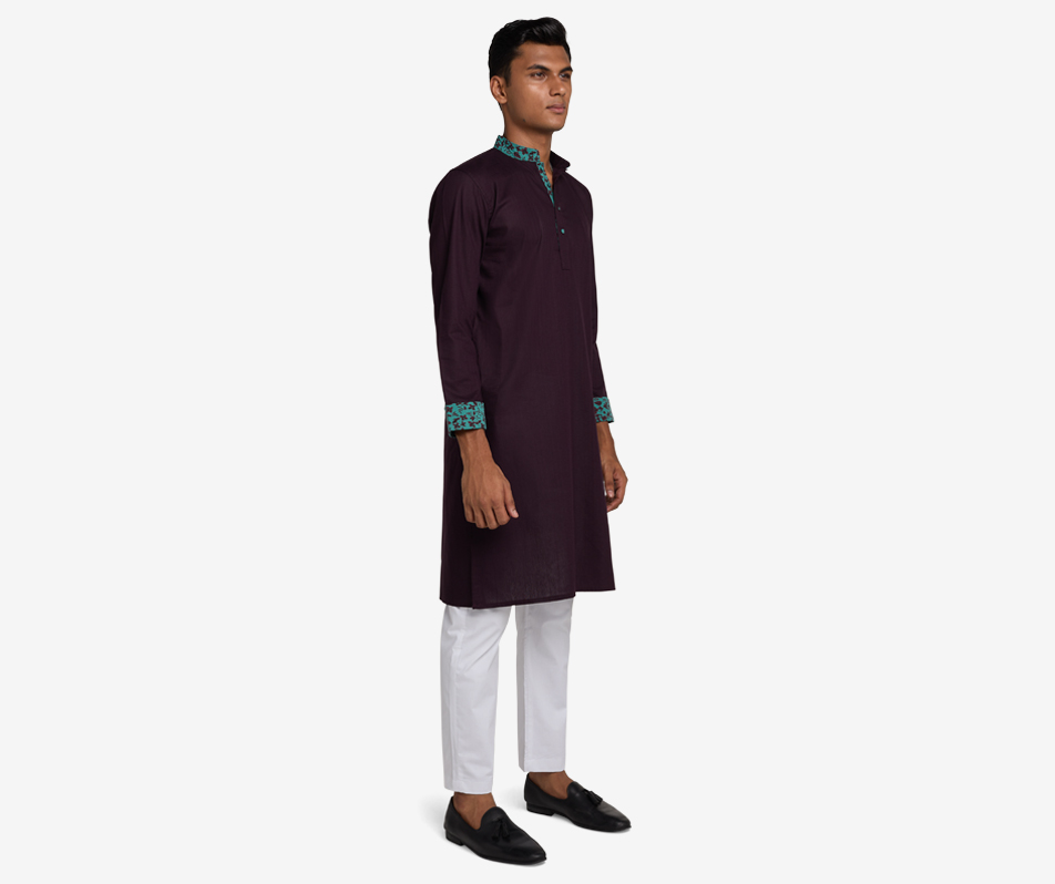 Introducing our exquisite Mulberry Colored Panjabi, in a rich mulberry hue. Crafted from a high quality cotton fabric with meticulously placed teal contrast features, this panjabi …
