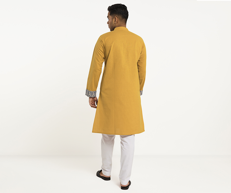 Be on trend with the most sought after colour, introducing our Mustard panjabi, inspired by the “The Great Wave off Kanagawa”, the wave design can be found on the cuff, interior pl…