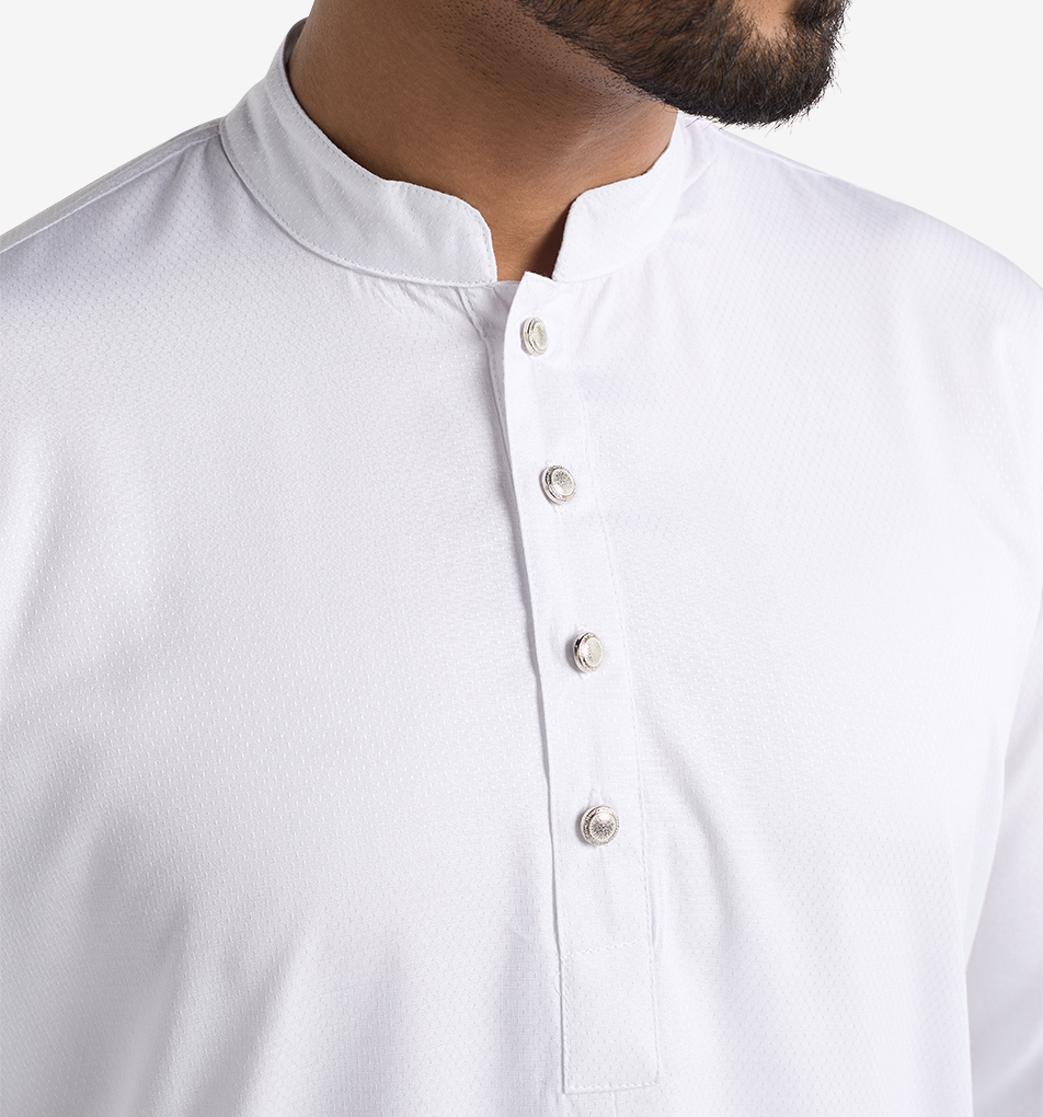 Introducing the Mahal Noble All White Panjabi, a vision of purity and elegance that transcends time and trends. A true wardrobe essential for all men, this timeless piece exudes an…