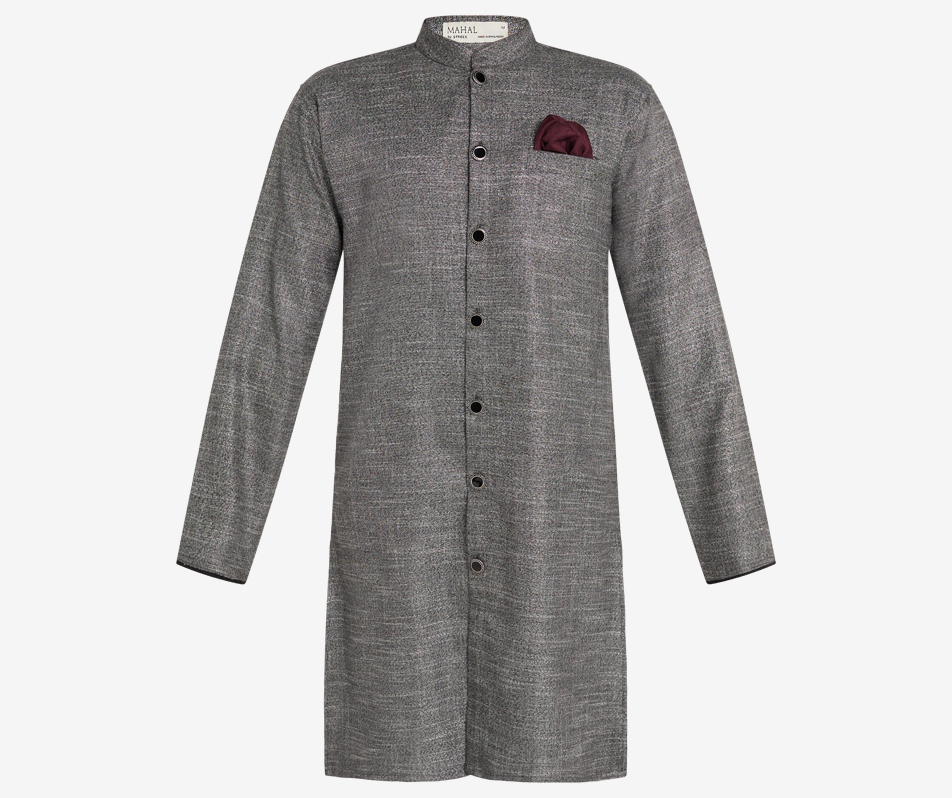 Eclipse the room with this stunning Silver Meteorite Sherwani. Taking you on a space odyssey, this piece is crafted with high-quality rich silver fabric with intricate detailing re…