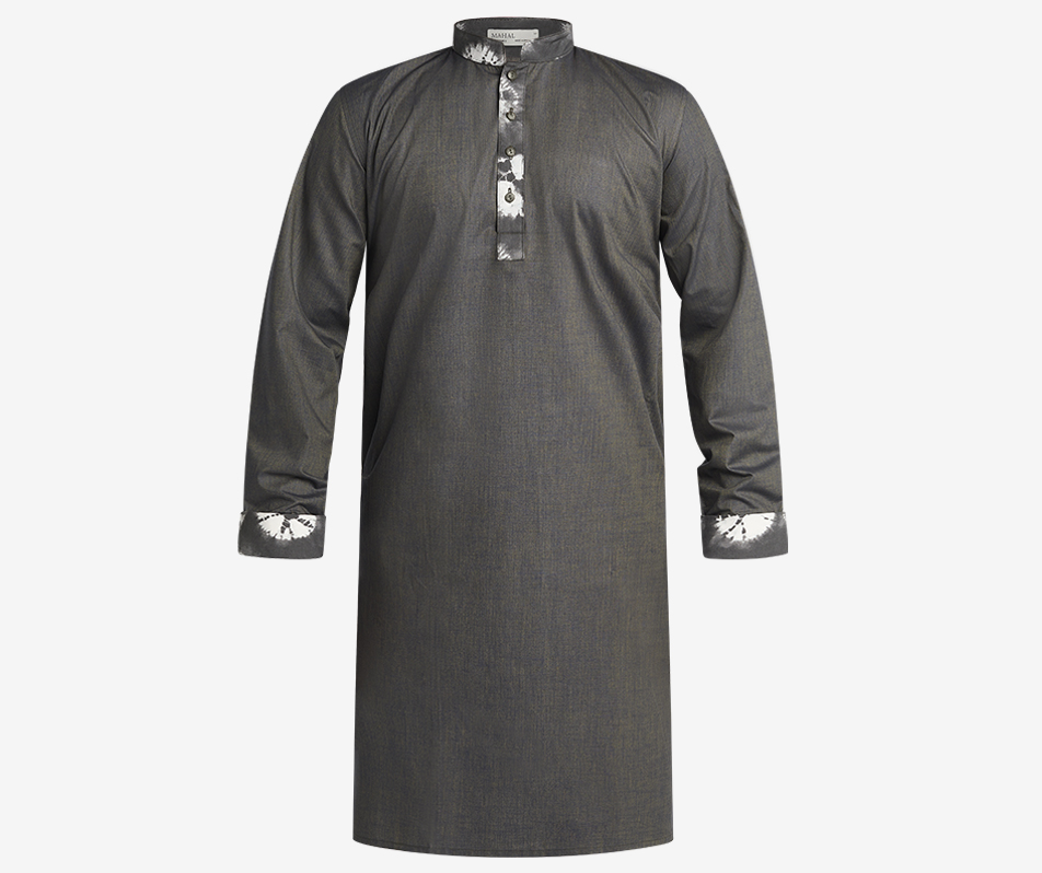 Sophisticated and carefree come to mind with this Smokey Ash kurta Panjabi. In a very sleek charcoal colourway blended with a summer favourite tie dye effect, allowing a modern, sm…