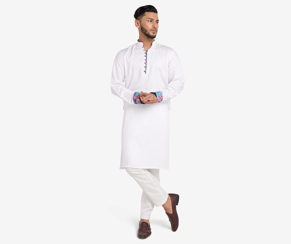 Burst into the festivities of the summer season with this Moroccan inspired multi coloured Panjabi. Easy on the eye and an even cosier fit on the body. This panjabi highlights the …