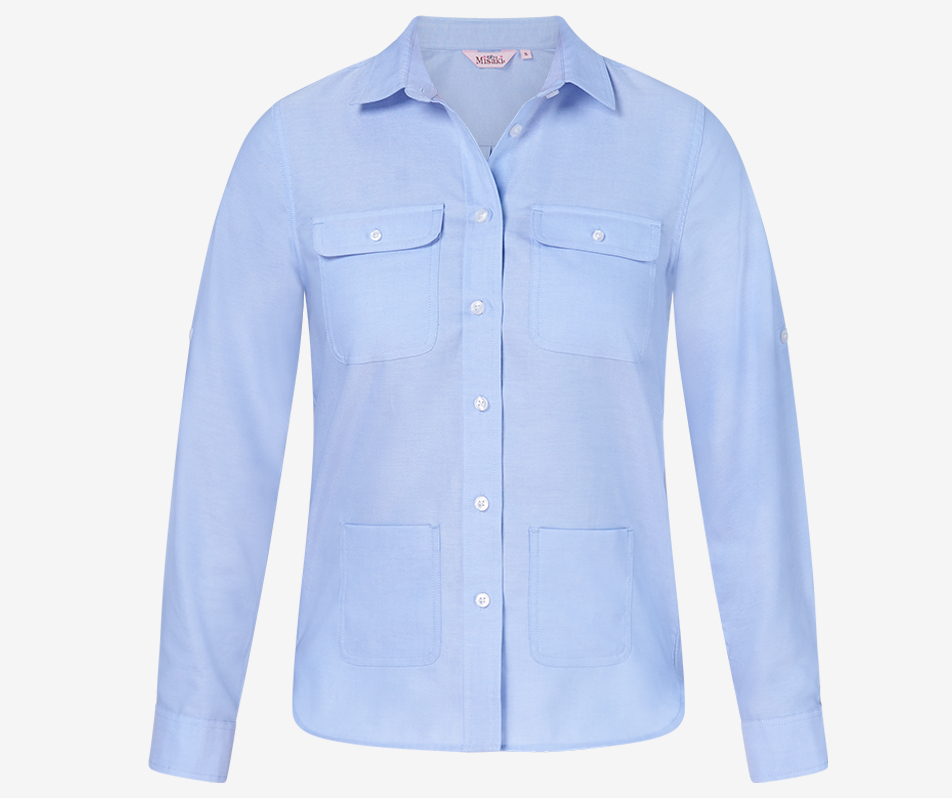 With a modern, sleek and comfortable fit, this long sleeve solid blue shacket is sure to accompany you anywhere and everywhere - be it it on outings or the office. Made with the fi…