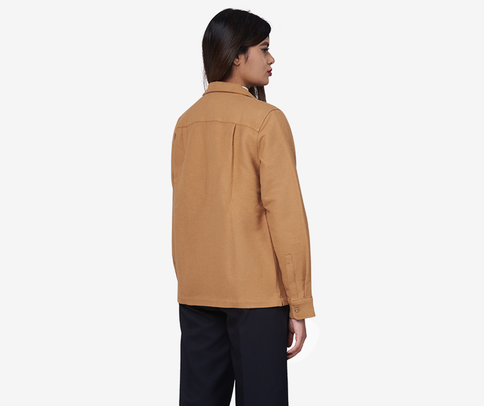 This chic Winter Shacket comes in a luxury camel colour with a cuban collar design and two front pockets, showing a cool hue with a warm feeling. Made with 100% Cotton Flannel, cre…