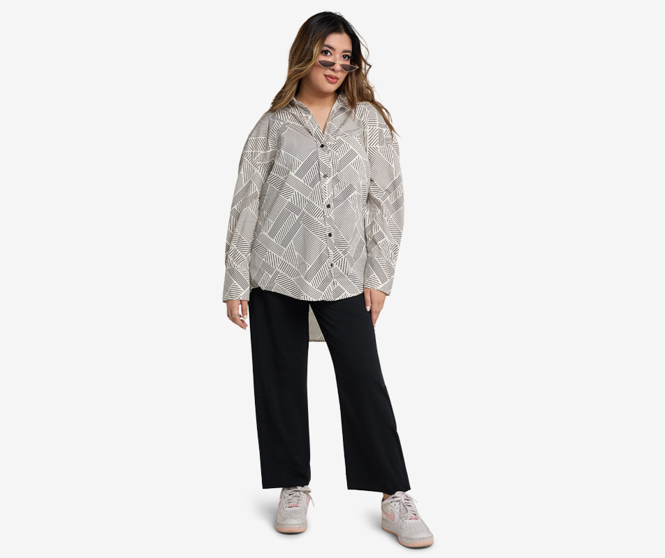 A striking blend of classic and contemporary style. In a Monochrome style, this trendy shirt features bold black and white stripes that make a powerful statement. With its oversize…