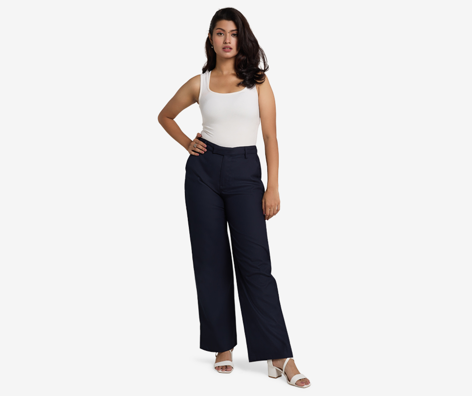 A must-have for your capsule wardrobe - Navy High-Waist Wide Leg Trouser. The high-waisted design elongates your silhouette and offers a flattering fit that accentuates your curves…
