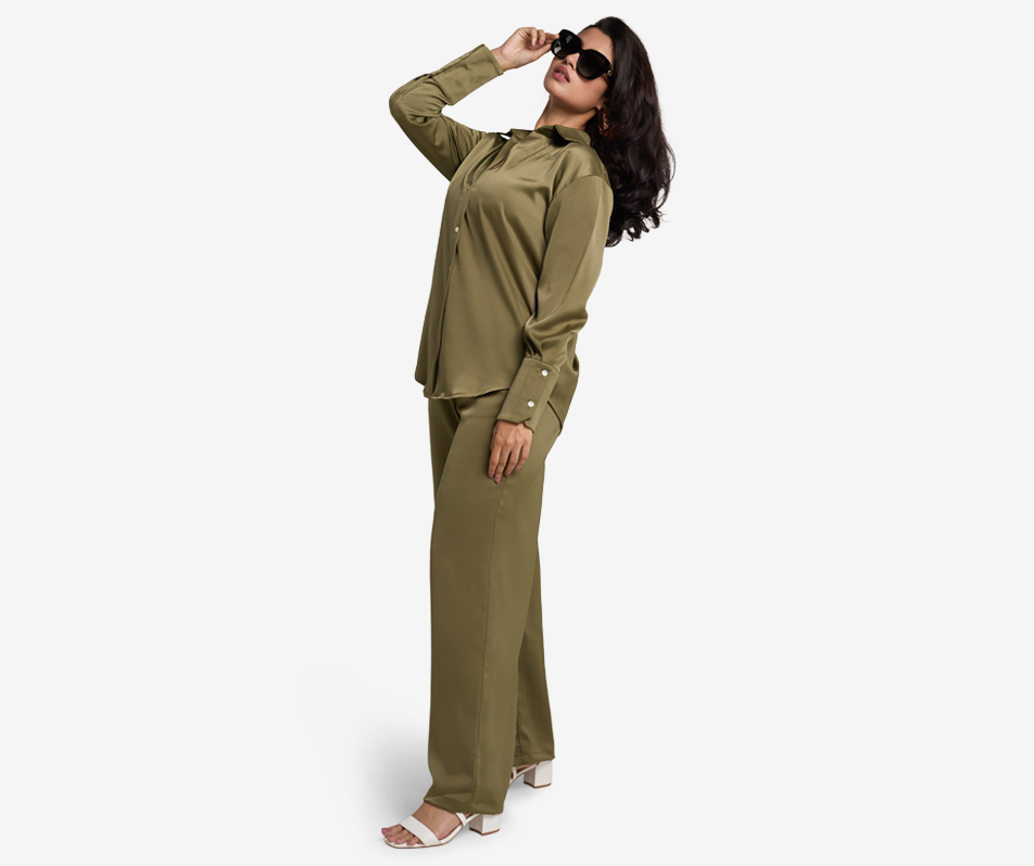 Introducing another colourway in our must-have co-ord set – the Olive Matte Satin Wide Trousers. Effortlessly chic, these trousers redefine comfort and fashion. Whether part of a c…