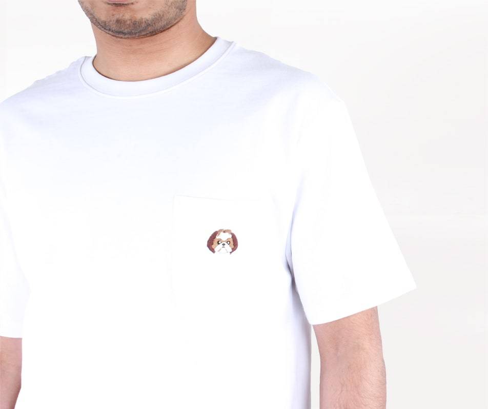 Are you a fan of plain white t-shirts? Are you a dog lover? Wear this white t-shirt with a doggo embellishment on the chest pocket to add a personal touch to your outfits. Pair thi…