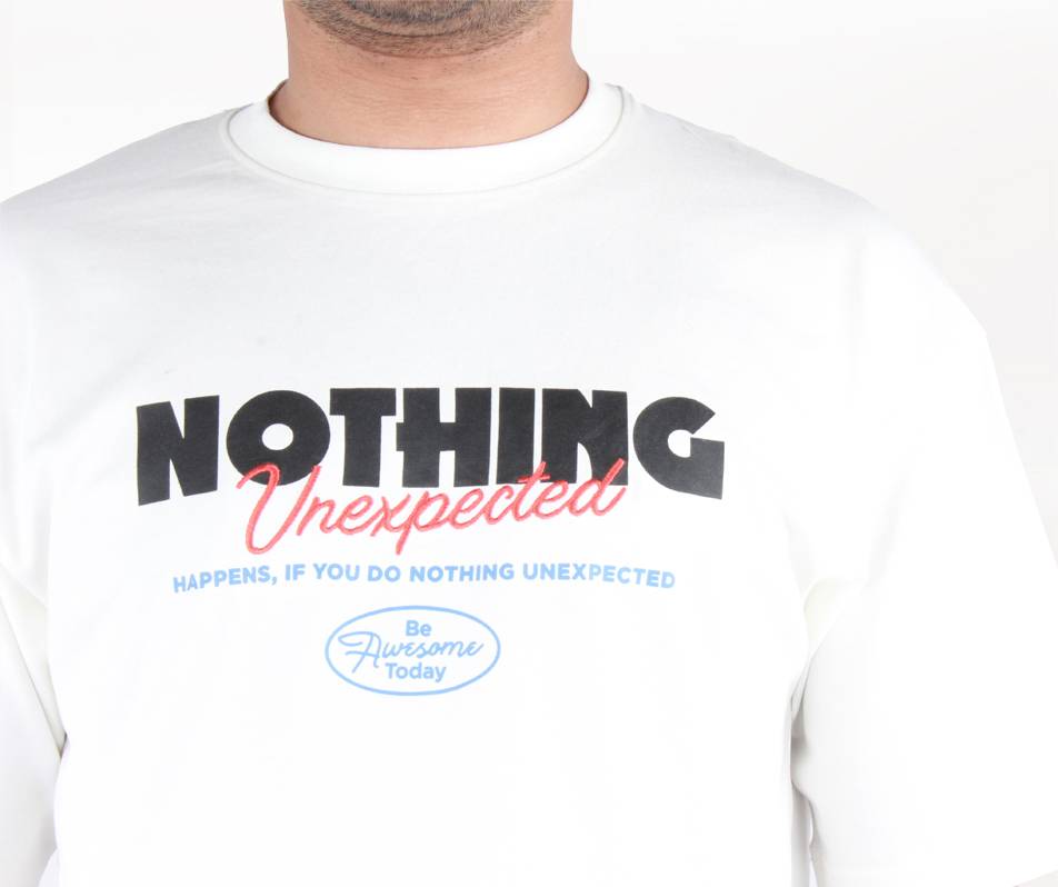 The best thing about graphic t-shirts is that you are allowed to share your personality and ideas through clothing. This white t-shirt has the perfect words "NOTHING Unexpecte…