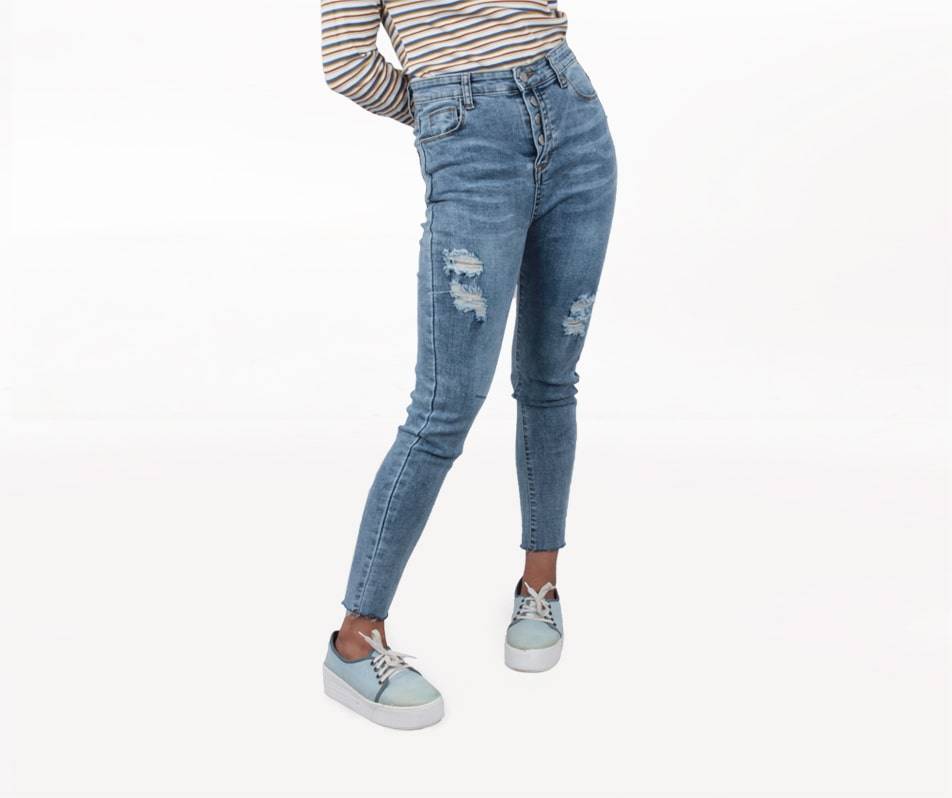 Made out of premium cotton-spandex fabrications, these super stretchy bleached jeans with button and ripped detailing is the denim update you need for your wardrobe.