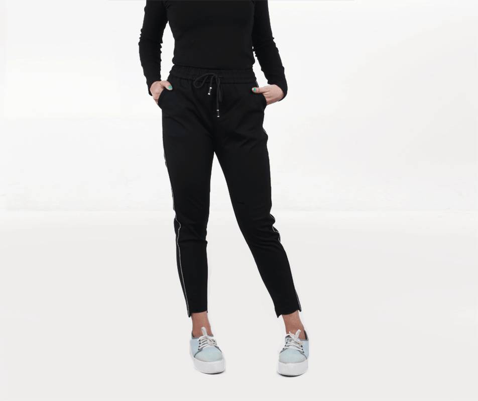 Feeling lazy but have a party to go to? Throw on these high-rise, super stretch and embellished trousers! The sleek side stripe detailing as well as uneven hem will add a perfect e…