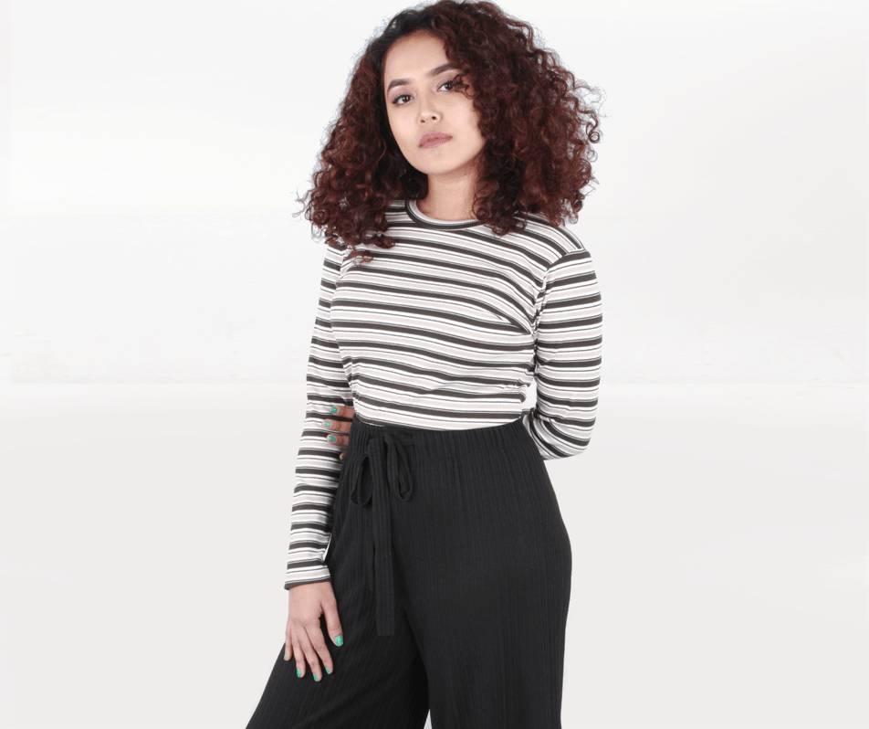 Add some playful colour to your wardrobe with these multi striped ribbed top. Pair with solid coloured trousers or jeans for an effotlessly classic look.