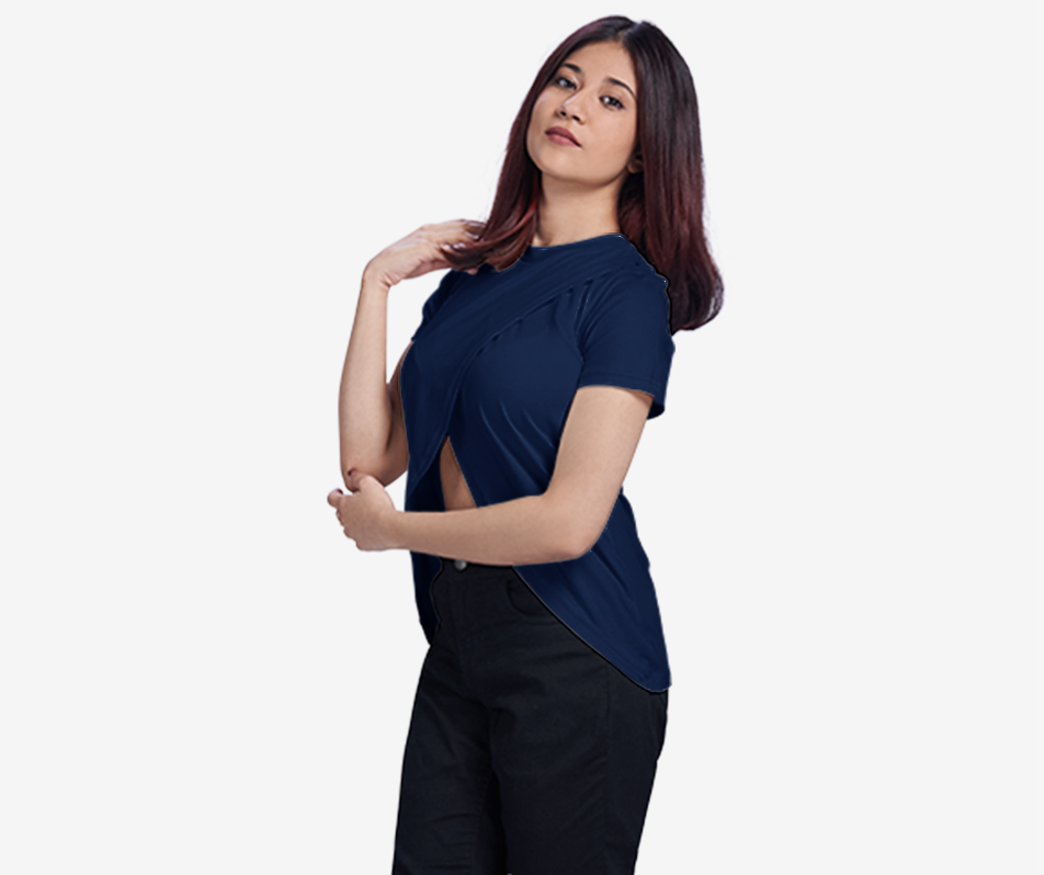 Be daring in the cross front slit top, a must have in any wardrobe for the modern fashionista. This design is cut from a cotton blend into a comfortable jersey with a crew neck and…