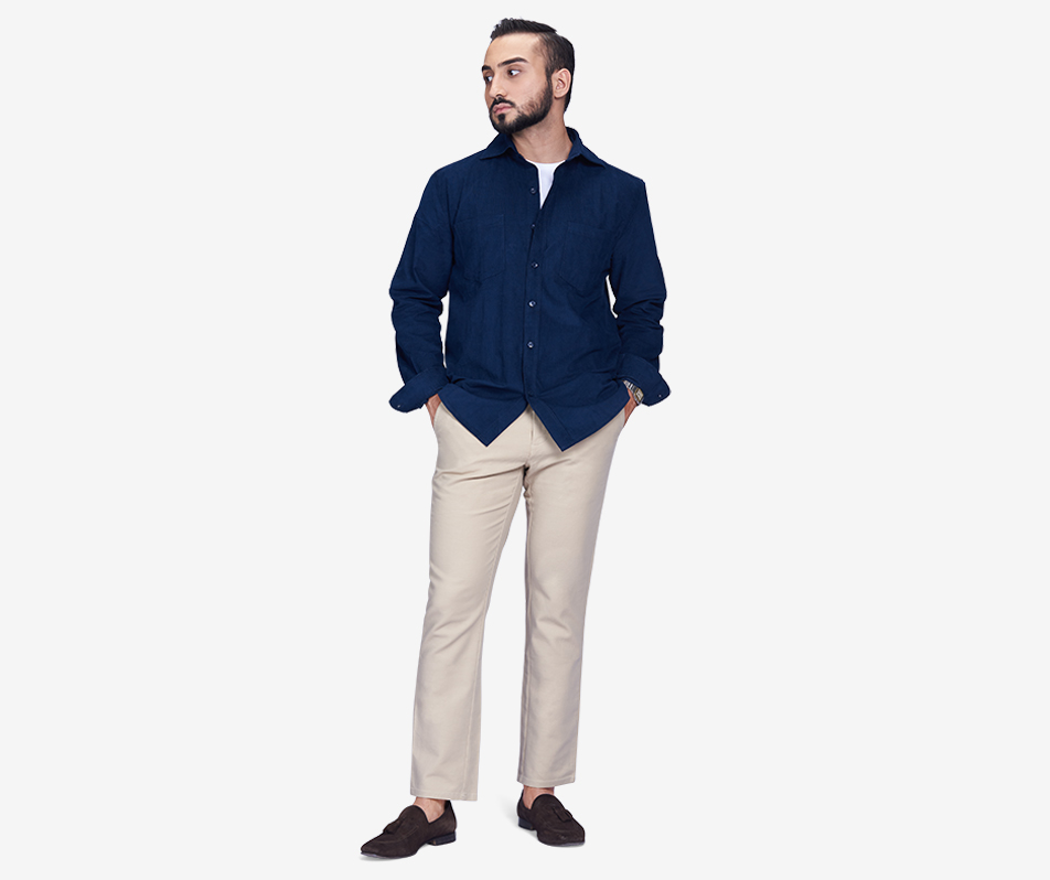No winter wardrobe is complete without the addition of a cool overshirt. Perfect for layering, the cotton corduroy in navy works just as well fully buttoned up as it does when worn…