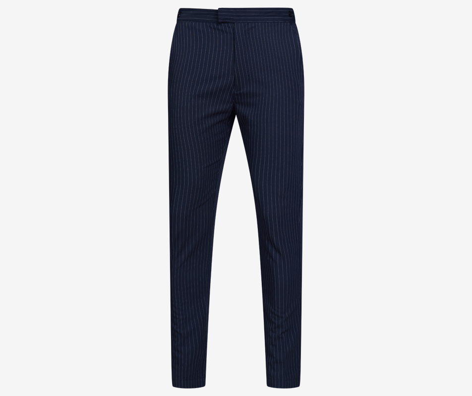 The Pinstripe Trousers in navy blend’s formality with a hint of a contemporary edge in the slim-cut fit and Pinstripe fabrication. Versatile in many ways, pair with a white T-Shirt…
