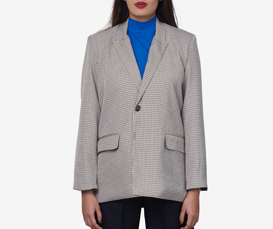 Woven in a microcheck pattern, pays homage to a heritage style. Crafted from a tweed blend, with two flap pockets and a one button design adding a sartorial mood. Wear it with knit…