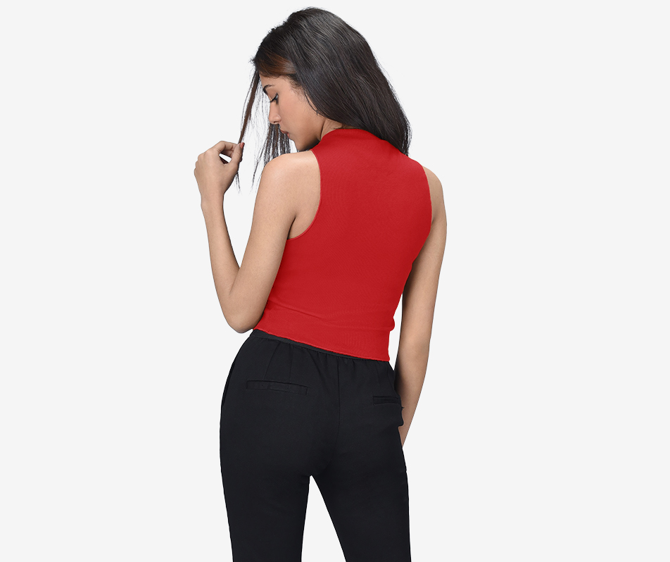 Bodycon ribbed mock neck sleeveless top for casual Sundays out with friends. The elements of this top give the wearer a sleek and stylish look to pull off for the season Model is 5…