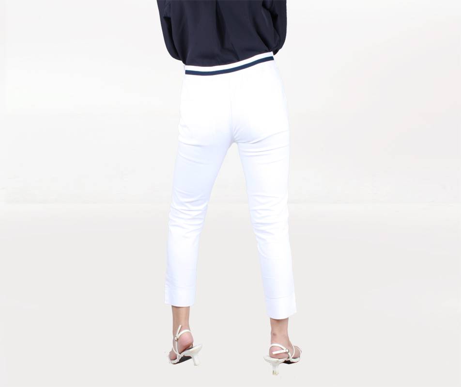 Look smart and forever-classic with the White high-rise cropped trousers. The elasticated contrast tape in the back adds a modern twist to the look. Made from PREMIUM cotton-stretc…