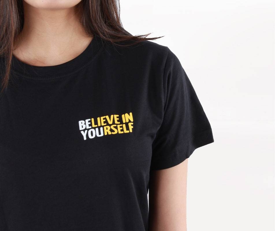 Are you a person who derives their confidence and performance through the clothes you wear? Remind yourself to be you and believe in yourself with this black t-shirt. This t-shirt …