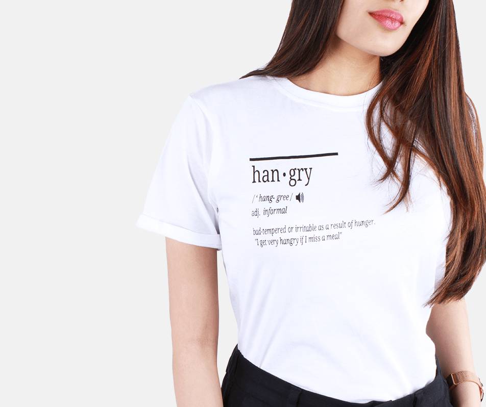 A simple definition print for those who live to eat. Wear this warning sign for a laid-back casual look or to complete a monochrome outfit. Pair it with joggers to relax in. This t…
