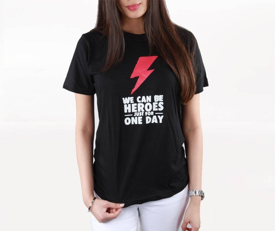 Women are the unsung heroes in the world. This t-shirt with the words “We can be heroes” resonates with the idea. The red thunderbolt over the text makes the t-shirt&rs…