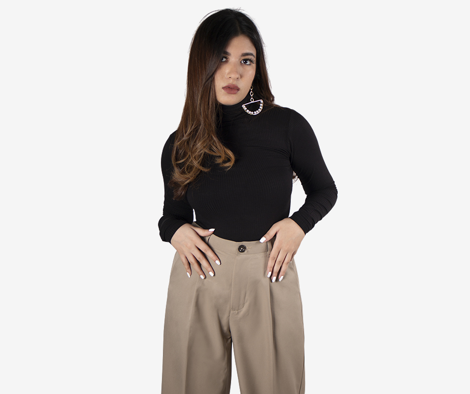 Made out of premium cotton stretch fabrications, this turtle-neck top comes is fitted with long sleevees. Wear tucked in or out and add a blazer for colder temperatures.