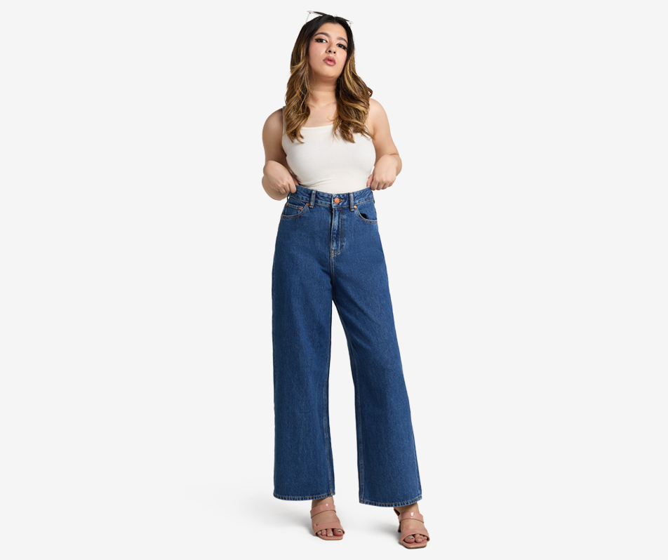 Color: Mid Blue Patten Washed denim Fit Type: Wide Leg Closure Type: Zipper Fly Details: Metal Button, 5-Pocket, Zipper Waist Line: Natural Length: Regular Fit Type: Loose Fabric: …