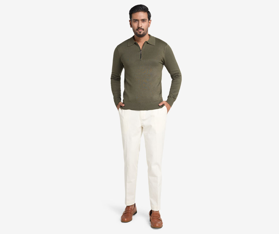 Care Instructions: Dry clean recommended or Hand wash cold Introducing our Signature Long Sleeve Zip Polo in Moss Green, effortlessly fusing refined elegance with a modern edge. Th…